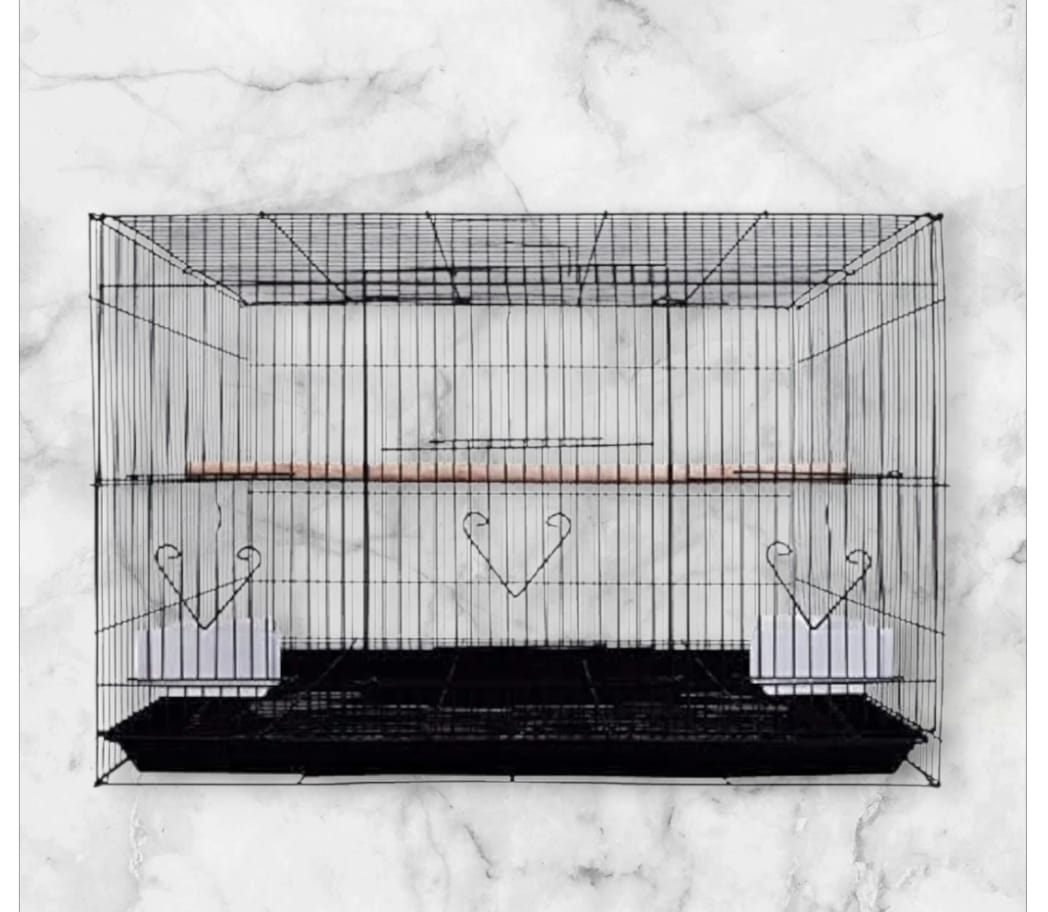 Each bird cage has 2 plastic feeders, one wooden perch with pullout plastic waste tray that is easy to clean.